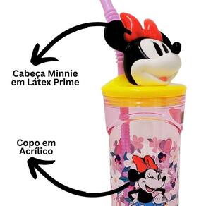 -01 unidade Copo 3D Com Canudo Minnie 360ml Tampa Rosto Látex