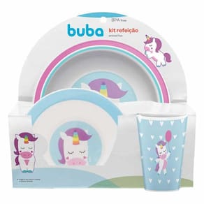 Kit Refeição Infantil - Prato - Bowl - Copinho - Animal Fun - Unicórnio - Buba: ideal para a mamãe que busca praticidade na hora do papa do bebê. O Kit Refeição para Bebê Animal Fun da Buba vai deixar as refeições do bebê muito mais divertidas. O conjunto é composto por prato, tigela (bowl) e copinho. Possui estampa com desenhos minimalistas e super fofos de um animalzinho - que vai atrair a atenção da criança e estimular a alimentação. INFORMAÇÕES: • Produto: Kit Refeição Animal Fun Unicórnio • Marca: Buba • Coleção: Animal Fun • Personagem: Unicórnio • Tipo: Kit Alimentação de Bebê • Categoria: Hora do Papa / Kits para Refeição do Bebê • Tamanho: - Copo: 10 x 6.5 x 10 cm - Prato Raso: 21 x 02 x 21 cm - Prato Bowl: 16.5 x 04 x 16.5 cm • Capacidade: - 250 ml: Copo - 300 ml: Prato Raso - 350 ml: Prato Bowl • Conteúdo: 1 Prato, 1 Bowl e 1 Copo • Idade recomendada: para bebês a partir de 06 meses de idade ESPECIFICAÇÕES: • Referência: 10737 • Código de Barras: 7908103707372 • Embalagem (C x A x L): 24 x 25 x 08 cm • Embalagem (Peso): 0.206 kg • Material / Composição: - Livre de BPA e Ftalatos - 100% Polipropileno (PP) - 100% atóxico • Certificado: Órgãos Autorizados - OCP´S (Organismos de Certificação de Produtos) AVISO: • As imagens são meramente ilustrativas • Os pesos, tamanhos e medidas são aproximados • As cores e estampas dos produtos podem ter variações • As informações são de responsabilidade do fabricante ou fornecedor