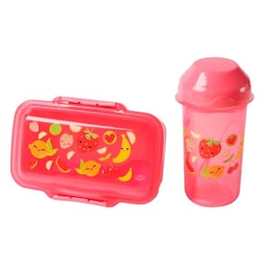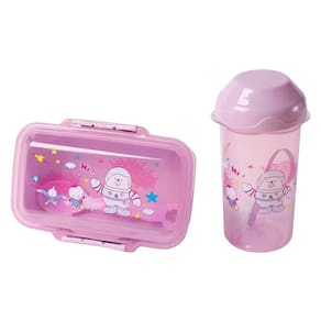 Kit Refeição Marmita + Garrafinha + Talher P/ Lancheira Infantil Escolar - Cor: Rosa
