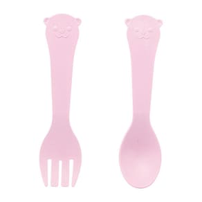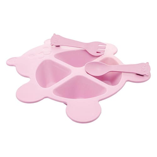 Kit Refeição Prato 2 Talheres de Bambu Baby Bear Rosa - Lyor.