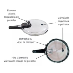 Contém: - 1 borracha anel de silicone para Panelas de Pressão Marca NIGRO Linha ETERNA; - 1 peso ou válvula de alívio de pressão; - 1 válvula de segurança repetitiva de silicone; - 1 pino central.