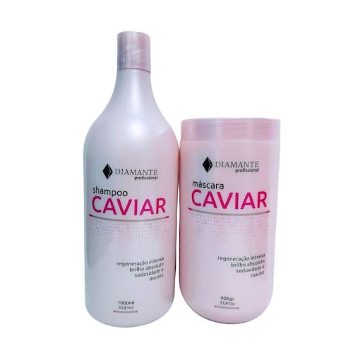 Modo de usar: Aplicar nos cabelos limpos e úmidos, massageando até formar espuma, enxágue para retirar todo o produto. Repita o processo se necessário.  Composição: Aqua, dissodium edta, ceteary Alcohol, cetrimonium chloride, mineral oil, citric acid, Polyquartenium-7, methylparaben, propylparaben, dimethicone, parfum, linalool, d-Limonese, Benzyl Benzoate, Benzyl salicylate.  1 máscara de 900 gramas de Caviar. A máscara de Caviar proporciona regeneração intensa dos fios gerando um brilho absoluto, deixando os cabelos macios.  Modo de usar: Aplicar sobre os produtos limpos e úmidos. Deixe agir entre 3 e 20 minutos. Enxaguar em seguida retirando todo excesso.  Composição: Aqua, dissodium edta, ceteary Alcohol, cetrimonium chloride, mineral oil, citric acid, Polyquartenium-7, dimethicone, parfum, linalool de limonene, butylphenyl, methylproprinol, alpha-isomethyl, lonone, Benzyl Benzoate, Benzyl salicylate, 2 bromo-2-nitropropane-1, 3-diol.