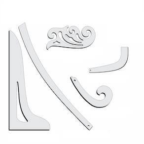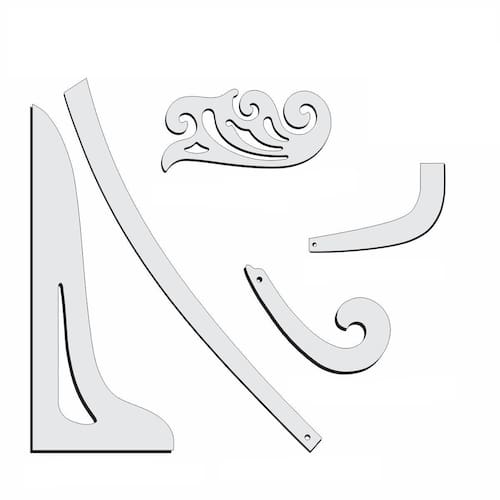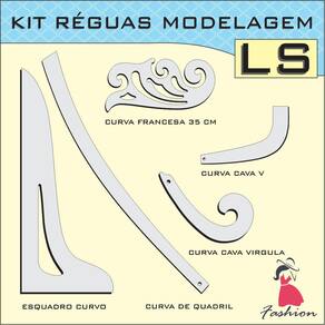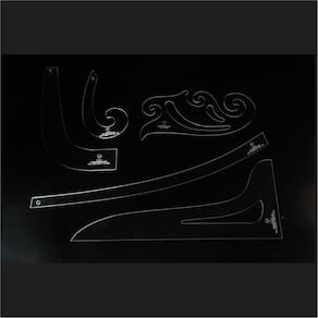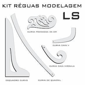 Composto por cinco réguas: Curva Francesa Grande, Curva Cava Vírgula, Esquadro Curvo 50cm, Curva de Quadril e Curva Cava V.