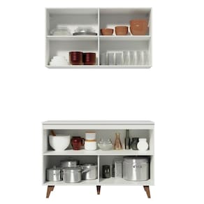 - Itens inclusos: Um Balcão, com duas portas convencionais e tampo | Um Armário Aéreo, com duas portas convencionais