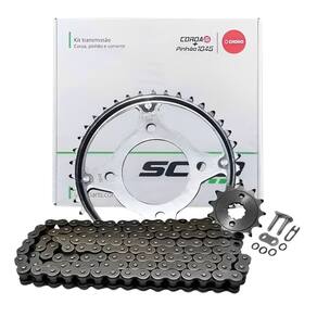 Contem: *1 Pinhão 13 Dentes *1 Coroa 40 Dentes com 4 furos com protetor *1 Corrente com Retentor 520uox110L elos emenda com trava