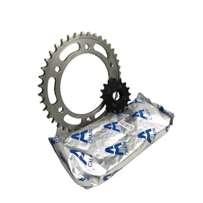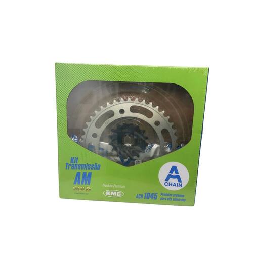 Embalagem: 01 Kit Transmissão Completo. ( Coroa, Pinhão e Corrente )