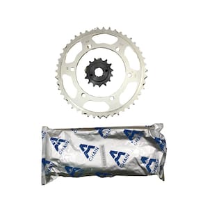 Embalagem: 01 Kit Transmissão Completo. ( Coroa, Pinhão e Corrente )