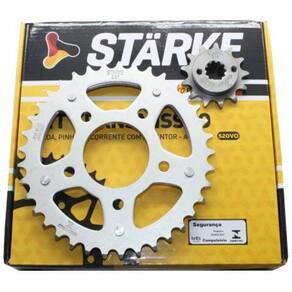 Os kits de Transmissão Starke são produzidos usando a mais alta tecnologia, as coroas são produzidas em aço temperado por indução aço 1045 nos dentes da coroa. O Pinhão é produzido em aço 1045 por CNC de última geração, tratado em fornos térmicos proporcionando uma maior durabilidade do material. As correntes Starke são produzidas em aço especial, testada em laboratórios buscando uma melhor durabilidade e segurança.