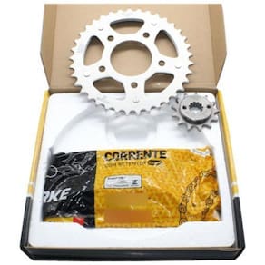 Benefícios do produto: Aço 1045; Kit com corrente reforçada com retentor; Componentes certificado com o selo do Inmetro; Ótimo custo benefício.