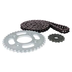 Especificações Técnicas:- Corrente 428H X 114L;- 38 dentes da coroa;- 15 dentes do pinhão.