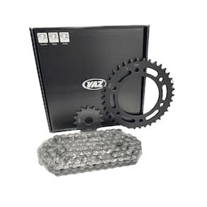 Embalagem: 01 Kit Transmissão Completo. ( Coroa, Pinhão e Corrente )