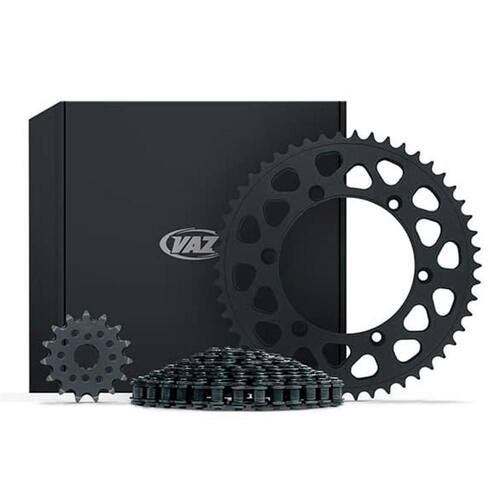 Kit certificado inmetro , a coroa temperada, o pinhão e a corrente que compõem o novo kit vaz xtreme black de transmissão oferecem alta performance, durabilidade e maior resistência. Disponíveis em variedade de opcionais e acabamentos foram desenvolvidos a partir de modernas tecnologias, equipamentos de última geração, submetidos a tratamentos especiais e com as melhores matérias-primas.
