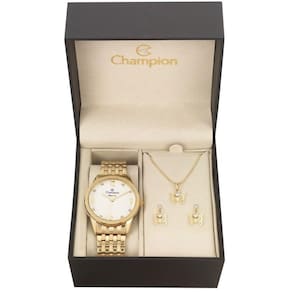 - Kit champion feminino com relógio, gargantilha e par de brincos folheados. OBS : Gargantilha e par de brincos nem sempre são os da foto (imagem meramente ilustrativa)