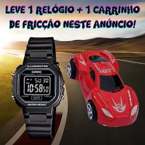 Kit Relógio de Pulso Casio Infantil Masculino Resistente Água Calndário Alarme Digital LA-20WHS + Carrinho Miniatura - LA-20WH-1BDF - Preto