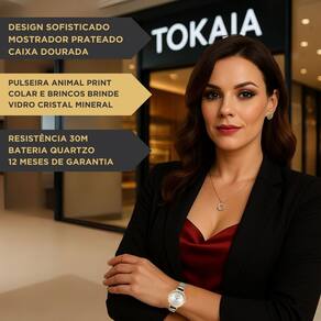 O Kit Relógio Condor Feminino Dourado é o equilíbrio perfeito entre sofisticação e ousadia. Seu design combina uma caixa metálica dourada de 3,8 cm com mostrador prateado minimalista e pulseira com estampa animal print, trazendo estilo moderno sem perder a elegância. Acompanha colar e brincos com detalhes circulares que reforçam o charme do conjunto, tornando-o ideal para quem deseja brilhar em todas as ocasiões. Com resistência à água de até 30 metros e vidro em cristal mineral, o modelo oferece durabilidade e conforto para o dia a dia. Um acessório que traduz atitude, beleza e praticidade em cada detalhe.