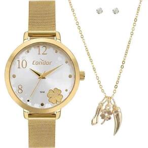 Kit Relógio Dourado Feminino Condor COPC21JJH/K4K