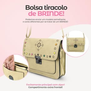 Como bônus especial, na compra deste kit você ganha uma bolsa tiracolo, perfeita para complementar o seu visual. A bolsa pode variar em detalhes e cor de acordo com a disponibilidade em estoque.