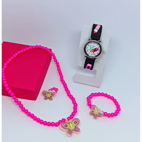 Relógio Infantil Analógico 3D - O Toque Divertido e Esportivo para os Pequenos + Colar, Pulseira e Anel de Miçangas