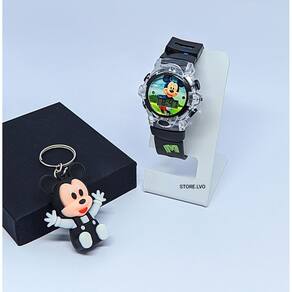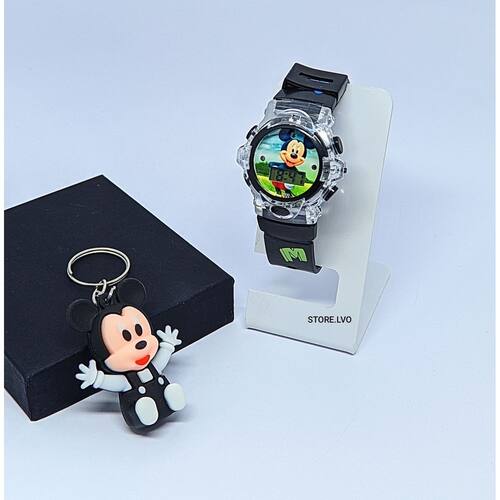 Kit Relógio Infantil Digital Pisca Luz Led + Chaveiro mini Boneco 3D Super Heróis Crianças Homem Aranha Minnie Frozen - Cor: Mickey