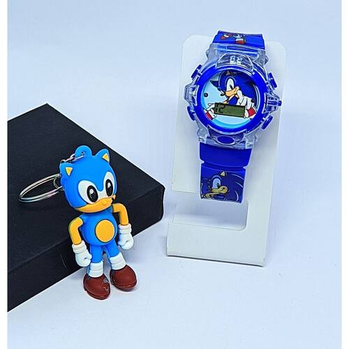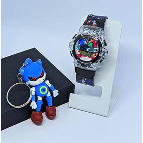 Kit Relógio Infantil Digital Pisca Luz Led + Chaveiro mini Boneco 3D Super Heróis Crianças Homem Aranha Minnie Frozen - Cor: Sonic