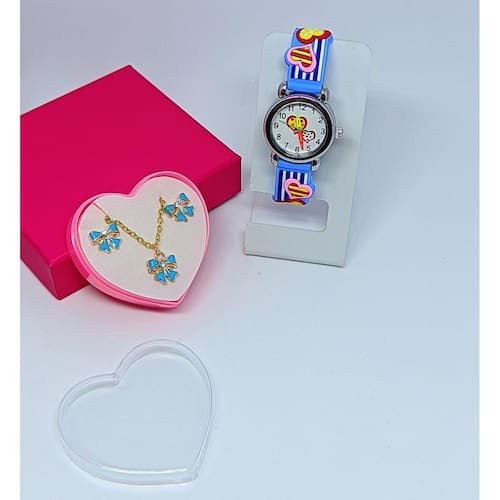 Relógio Infantil Analógico 3D + Conjunto Colar e Brincos com Caixinha Coração O presente ideal para encantar os pequenos com estilo, diversão e charme! Relógio Infantil Analógico 3D Surpreenda seu filho(a) com um relógio que une praticidade e diversão! Com um design exclusivo em 3D, este relógio analógico é perfeito para meninos, meninas, bebês e crianças que adoram um visual moderno e esportivo.