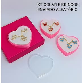 Aviso: as estampas são enviadas aleatoriamente conforme estoque. Produto não é totalmente à prova d’água. Garantia de 30 dias para sua tranquilidade. Kit Conjunto Colar e Brincos Infantil + Caixinha Coração Complete o presente com um conjunto encantador de bijuteria infantil, perfeito para ocasiões especiais ou para o dia a dia com muito charme: