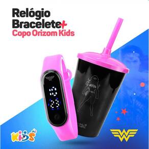SUPER Relógio digital em formato de bracelete da nossa linha Kids! AH! E ainda leva de PRESENTE um super copo exclusivo! Agora seu filho terá um grande companheiro nas suas brincadeiras, aventuras de finais de semana, natação, bicicleta, ou qualquer outra atividade! Hiper leve, parece que o pulso está livre! Super confortável no pulso que dispensa regulagem por parte de um profissional (profissional de relógio), devido sua flexibilidade de tamanho atraves dos furos de regulagem presentes na pulseira de silicone, que por sinal, é ultra resistente! Super intuitivo seu manuseio, com display digital, onde com apenas um clique você visualiza a hora e minutos em milésimos de segundos! Além de tudo isso, vai acompanhado de um manual super explicativo, com linguagem simples. Esqueça manuais chineses ou em inglês. Os produtos Orizom vão todos com manuais em português.