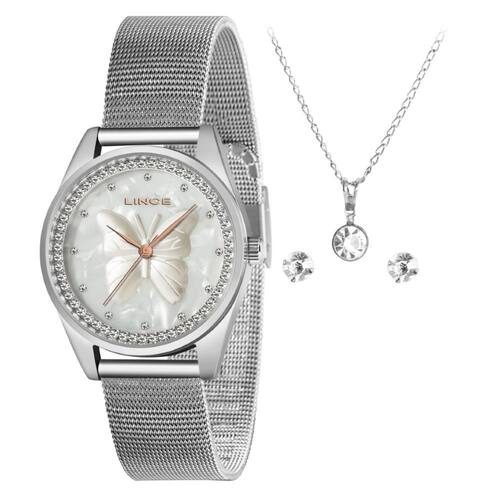 O Relógio Lince Feminino LRMJ146L KN98B1SX é um modelo que une sofisticação e delicadeza em cada detalhe. Sua caixa de 36mm em aço prateado valoriza o design moderno, enquanto o mostrador madrepérola traz o charme de uma borboleta em relevo, rodeada por marcadores brilhantes que iluminam o visual.