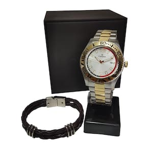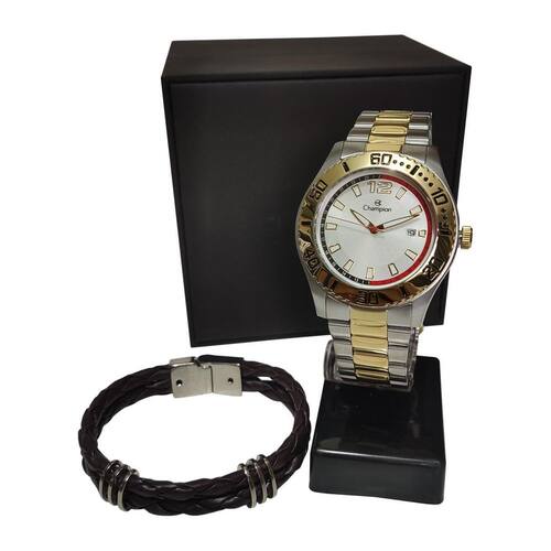 Kit Relógio Masculino Dourado E Prata Champion Pulseira Itens Incluso Relógio Caixa Certificado de Caracteristícas funções: hora, calendário gênero: masculino estilo: executivo, esportivo, casual e social sistema de energia: quartzo bateria tipo de mecanismo: analógico coroa: simples vidro: cristal mineral tampa posterior: rosca resistência a água: 5 atm 50m medidas do relógio: 42mm peso 110g Resistência àgua wr: 5 atm pode lavar as mãos: sim pode usar em água corrente: sim pode usar na piscina: sim pode usar em mergulho profundo: não 1 ano caso apresente algum defeito de fabricação durante o período da , você deverá encaminhar diretamente ao fabricante respectivo. Devolução Para devolver um produto por desistência, os seguintes itens deverão ser observados: O prazo para desistir da compra. O produto deverá ser encaminhado na embalagem , sem indícios de uso, com etiqueta não violada, acompanhado, manual, termo de e todos os seus acessórios.