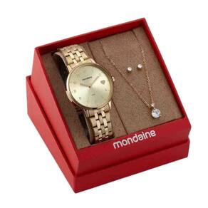 Kit relógio mondaine dourado feminino 32597lpmkde1k1a marca mondaine é uma das mais icônicas no mundo dos relógios, conhecida por seu design minimalista e elegante que conquistou fãs em todo o mundo. Fundada em 1951 na suíça, a mondaine tem uma tradição de mais de 70 anos em produzir relógios de alta qualidade, com precisão suíça e materiais de alta qualidade. A marca ficou famosa por seus relógios inspirados em estações ferroviárias suíças, com o icônico mostrador com fonte clássica e os ponteiros em forma de bastão. Além disso, a mondaine também se destaca por sua preocupação com a sustentabilidade e utiliza materiais reciclados em seus produtos, além de investir em tecnologias eco-friendly. Com uma ampla variedade de modelos, desde os mais clássicos até os mais modernos, a mondaine é a escolha ideal para quem busca elegância e sofisticação em um relógio de alta qualidade.Na elister, a qualidade é uma prioridade em todos os nossos produtos e serviços. Nós nos esforçamos para oferecer aos nossos clientes uma ampla variedade de acessórios, incluindo relógios e óculos de sol, com as melhores marcas e estilos. Nós nos orgulhamos de nossa seleção de produtos, que são escolhidos com atenção aos detalhes e qualidade. Além disso, a nossa equipe é treinada para oferecer um atendimento excepcional, garantindo que cada cliente seja tratado com o respeito e a atenção que merece. É mais que estilo, é elistera semijoia que vai acompanhada do produto pode variar de acordo com a disponibilidade do estoque e não está inclusa na garantia.Especificações técnicas do relógio- marca: mondaine- gênero: feminino- tipo de mostrador: analógico- tipo de fecho: dobrável- cor da caixa: dourado- cor do mostrador: dourado- cor da pulseira: dourado- material da caixa: aço- material da pulseira: aço- largura da caixa: 4,0 cm- espessura da caixa: 9 cm- comprimento do relógio: 21 cm- largura da pulseira: 1,6 cm- resistência à água: 5 atm 50m - garantia: 12 meses Ean: 7909669160779