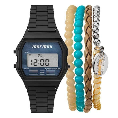 Garantia: 12 meses em toda rede autorizada MORMAII Conteúdo da embalagem: 1 relógio, 1 pulseira, manual, certificado de garantia Fornecedor: Technos Indústria e Comércio da Amazônia S/A EAN: 7891530721557