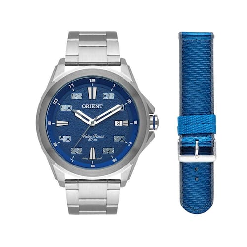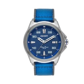 Relógio Orient Masculino MBSS1426 D2SX Relógio: ORIENT Modelo: MBSS1426 D2SX Gênero: Masculino Visor: Azul Funções: calendário e um sistema easy-click, que possibilita a troca da pulseira sem o uso de ferramentas Pressão: resistência à água 50 m Características: com caixa em aço e pulseira em aço+pulseira em nylon Diâmetro da caixa: 45mm
