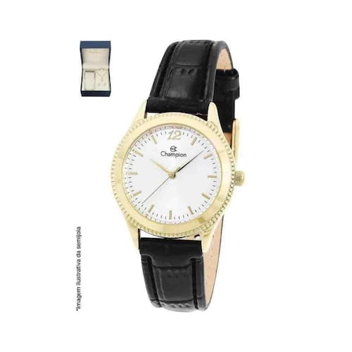 ESPECIFICAÇÕES TÉCNICAS DO RELÓGIO -Marca: Champion -Gênero: Feminino -Tipo de mostrador: Analógico -Tipo de fecho: Fivela Simples -Cor da caixa: Dourado -Cor do mostrador: Branco -Cor da pulseira: Preto -Material da caixa: Metal -Material da pulseira: Couro -Resistência à água: 5 ATM 50 m -Garantia: 12 meses Ean: 7891511413129