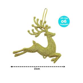 Este Kit Rena Glitter Dourada Natal 15cm 6 Peças - Magizi é ideal para decorar a Arvore de Natal, guirlandas ou a casa, assim como lojas ou escritório!