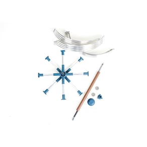 Informações técnicas do kit pre montado : 20 rebites 4x12 mm 2 porcas travante parlock 1/2 travante 2 rolamentos blindados 1 cruzeta de anel superior 1 cruzeta de anel inferior 10 astes alum. 0.4 mm cor natural 1 cano protetor de eixo 1 eixo mecânico 1/2 ou 12 mm 1 kit Exaustor de polipropileno 1 manual de montagem