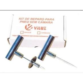 Kit reparo pneu passeio viluz sem tripinha Kit reparo pneus sem câmara para carros e motos. Kit de reparo de pneus sem câmara Conserte furos em menos de 5 minutos. Produto de 1 linha - de 06 meses - não se engane com produtos importados de baixo custo e qualidade mais baixa ainda. Todo fabricado em aço especial, com tratamento térmico e pintura desenvolvida para maior durabilidade. O kit inclui: 2 - cabos cromados 1 - agulha aplicadora 1 - agulha escariadora de furos 1 - arroela de apoio Marca: Não Informado Ean: 7906931410631