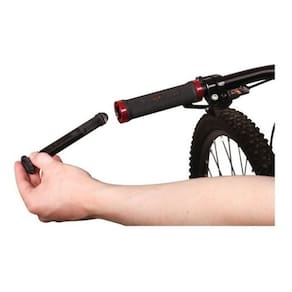 Um kit de reparo de pneus sem câmara que fica dentro do guidão. Possui duas partes destacáveis. A primeira parte tem uma ferramenta de agulha e três tampões de pneu de 5 mm de espessura e a outra parte tem uma faca com três tampões de pneu de 2 mm. Você não precisa de nenhuma ferramenta para prendê-lo ao guidão; você só precisa virar o exterior de alumínio. Cada parte pode ser anexada à esquerda ou à direita, dependendo da preferência do piloto. reparo de longa duração para punções de 1 a 5 mm.