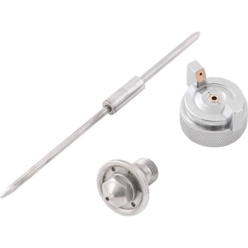 1 Agulha de 1,8 mm, 1 guia da agulha, 1 núcleo da mola ( já montados) 1capa de ar, 1 porca do bico, 1 anel da capa de ar, 1 porca da capa de ar ( já montados) e 1 bico de 1,8 mm.