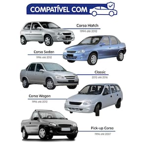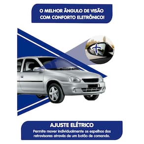Kit Retrovisor Elétrico Simples Corsa Classic 1996 Em Diante Tragial DESCRIÇÃO: O kit retrovisor elétrico simples TRAGIAL permite transformar os espelhos com ou sem regulagem manual interna do seu carro em elétricos através de um botão de comando. Tenha mais facilidade e comodidade com esse produto, que vai completo pronto para instalar. CARACTERÍSTICAS: - Projetado para auxiliar execuções de manobras de baliza mais rápidas e precisas; - Segurança: A capacidade de ajustar o retrovisor com facilidade permite que o motorista mantenha uma visão clara e sem obstruções do tráfego ao seu redor; - Ajuste Elétrico: permite mover individualmente os espelhos dos retrovisores através de um botão de comando. : 24 meses de do fabricante; A NÃO cobre erros de instalação ou MAU uso. CONTEÚDO DA EMBALAGEM: - 2 Motores para retrovisor; - 2 Tapa buraco; - 2 Base de encaixe; - 2 Chapa de fixação; - 2 Espelhos de retrovisor; - 1 de regulagem; - 1 Chicote de instalação; - 6 Parafusos. COMPATÍVEL COM: - Corsa Hatch 1994 - Corsa Hatch 1995 - Corsa Hatch 1996 - Corsa Hatch 1997 - Corsa Hatch 1998 - Corsa Hatch 1999 - Corsa Hatch 2000 - Corsa Hatch 2001 - Corsa Hatch 2002 - Corsa Hatch 2003 - Corsa Hatch 2004 - Corsa Hatch 2005 - Corsa Hatch 2006 - Corsa Hatch 2007 - Corsa Hatch 2008 - Corsa Hatch 2009 - Corsa Hatch 2010 - Corsa Hatch 2011 - Corsa Hatch 2012 COMPATÍVEL COM: - Corsa Sedan 1995 - Corsa Sedan 1996 - Corsa Sedan 1997 - Corsa Sedan 1998 - Corsa Sedan 1999 - Corsa Sedan 2000 - Corsa Sedan 2001 - Corsa Sedan 2002 - Corsa Sedan 2003 - Corsa Sedan 2004 - Corsa Sedan 2005 - Corsa Sedan 2006 - Corsa Sedan 2007 - Corsa Sedan 2008 - Corsa Sedan 2009 - Corsa Sedan 2010 - Corsa Sedan 2011 - Corsa Sedan 2012 COMPATÍVEL COM: - Classic 2012 - Classic 2013 - Classic 2014 - Classic 2015 - Classic 2016 COMPATÍVEL COM: - Corsa Wagon 1996 - Corsa Wagon 1997 - Corsa Wagon 1998 - Corsa Wagon 1999 - Corsa Wagon 2000 - Corsa Wagon 2001 - Corsa Wagon 2002 - Corsa Wagon 2003 - Corsa Wagon 2004 - Corsa Wagon 2005 - Corsa Wagon 2006 - Corsa Wagon 2007 - Corsa Wagon 2008 - Corsa Wagon 2009 - Corsa Wagon 2010 - Corsa Wagon 2011 - Corsa Wagon 2012 COMPATÍVEL COM: - Pick-up Corsa 1996 - Pick-up Corsa 1997 - Pick-up Corsa 1998 - Pick-up Corsa 1999 - Pick-up Corsa 2000 - Pick-up Corsa 2001 - Pick-up Corsa 2002 - Pick-up Corsa 2003 - Pick-up Corsa 2004 - Pick-up Corsa 2005 - Pick-up Corsa 2006 - Pick-up Corsa 2007 No Grupo CarroSomShop PEPE PARTS, entendemos a paixão que os motoristas têm pelos seus veículos. É por isso que nos dedicamos a fornecer os melhores acessórios e peças para melhorar seu carro e tornar cada viagem ainda mais emocionante. Explore nossa loja e descubra uma variedade de produtos automotivos que vão desde Retrovisor Elétrico, Travas Elétricas, Vidro Elétrico e etc até peças de reposição essenciais. Descubra o que você precisa para elevar seu veículo a um novo patamar Junte-se a nós e experimente o compromisso do Grupo CarroSomShop PEPE PARTS com a qualidade e a satisfação do cliente. Estamos ansiosos para atender às suas necessidades automotivas com produtos especializados e atendimento excepcional. Garanta o seu Retrovisor Elétrico Tragial agora e dirija com segurança e conforto. Marca: Não Informado