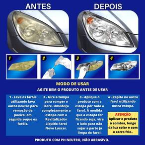 Com o revitalizador líquido farol novo luxcar, os faróis do seu carro ficam novos em minutos, sem a necessidade de trocá-los, lixá-los ou polir.