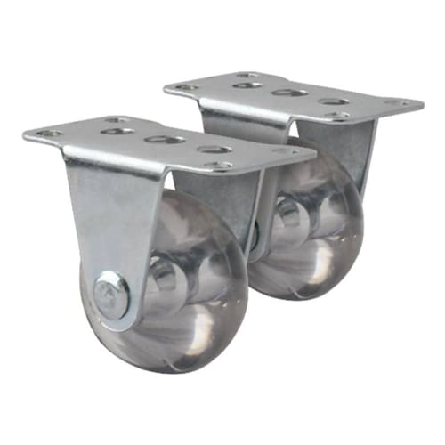 Kit Rodizio fixo rodinha em PU popularmente conhecido como silicone transparente Voltar Kit Rodízio CX35 Descrição: Valor do kit 2 peças Especificações Técnicas: Diâmetro: 36mm Capacidade de Carga: 50 Kg Altura Total: 44mm Sugestões de Aplicação: Estofados retráteis, camas auxiliares, gavetas e gavetões, móveis retráteis. Marca: Não Informado