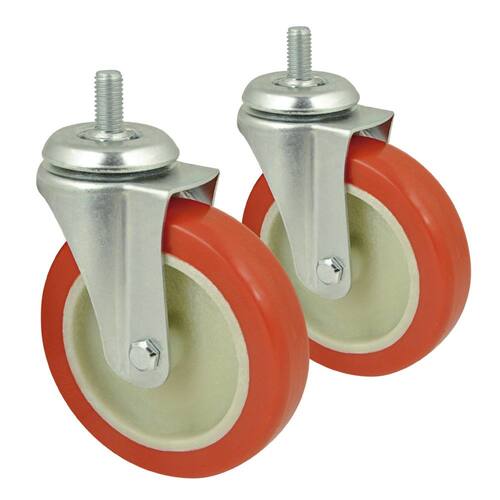 Rodizio industrial Roda da linha pesada Ø125mm com pino rosca 1/2polegadas x 26 Anti risco Roda na cor laranja Valor do kit de 2 peças Diâmetro: 125mm Capacidade de Carga: 105 Kg Altura Total: 150mm Fixação: pino rosca 1/2 x 26 Sugestões de Aplicação: Mesas, armários para ferramentas, fornos, buffets, assadeiras, cozinhas industriais, carrinhos industriais, linha de refrigeração, equipamentos industriais, balcões frigoríficos, refrigeradores, expositores, gôndolas, nobreaks, estabilizadores. Ean: 7898077294360