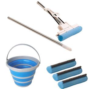 Kit Rodo Mágico Mop Com 3 Refil Limpa e Seca E Balde Dobrável
