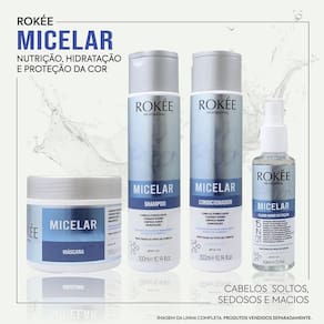 OCondicionador Micelar ROKÉE Professional, possui em sua Fórmula Extrato de Calêndula, Blend de Aminoácidos e Silicones nobre, que combinam com Tecnologia Micelar garantem alto poder de nutrição purificada, hidratação,proteção térmica e da cor, deixando os cabelos sedosos e macios.