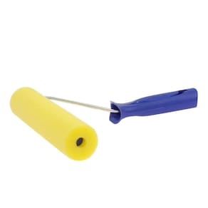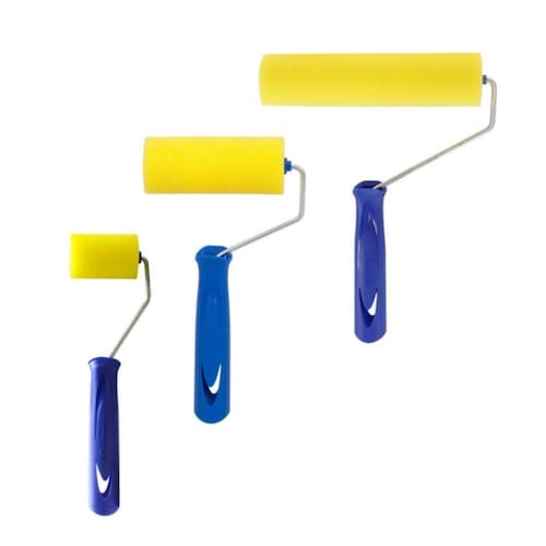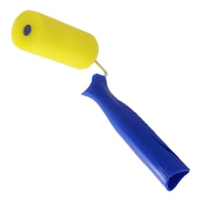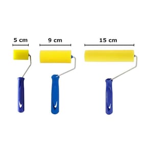 Indicado para: esmalte, óleo, verniz e stain Cor da espuma: amarelo Cor do cabo: azul Composição: rolo fabricado com espuma de poliéster, aço e pp Profissional Tamanhos: 50mm - 90mm - 150mm Diâmetro do rolo de 5cm: 35 mm Diâmetro dos rolos de 9cm e 15cm: 38mm Validade: indeterminada Conservação após limpeza: secar à sombra