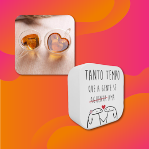 O Kit inclui 1 Luminária Box a Gente Se Ama e 1 Conjunto com 2 Canecas Coração Parede Dupla Its Love de 150ml cada.