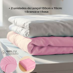 Características: 2 Lençois de Malha com Elástico Bublim Baby (70 cm x 130 cm x 15 cm) 3 Unidades de cueiro 100% algodão Incomfral (100 cm x 80 cm) 1 Protetor de colchão Impermeável BF Colchões (130 cm x 70 cm x 12 cm)