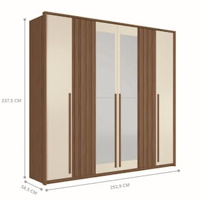 O Guarda Roupa de Casal possui 6 portas com dobradiças metálicas e possui 3 cabideiros do tipo oblongo que proporciona mais rigidex e durabilidade para comportar os mais variados tipos de roupas penduradas. Além disso conta com 7 prateleiras para deixar ainda mais organizado os seus pertences.