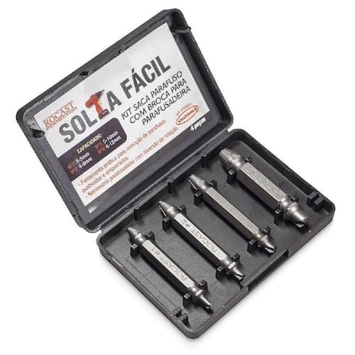 Necessário parafusadeira com inversão de rotação Ferramenta prática para remoção de parafusos quebrados e emperrados Apresentação: estojo plástico Jogo: 4 peças Medida: Nº1 3 - 5mm - Nº2 4 - 8mm - Nº3 5 - 10mm - Nº4 6 - 12mm