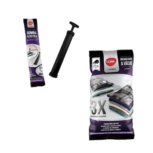 Kit Saco Organizador A Vácuo 50X60Cm com Bomba Manual Clink Saco Organizador A Vácuo Para Viagem Prático E Fácil 50X60Cm Saco a vácuo 50x60cm - ck4759
